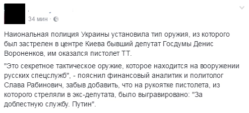 «По версии украинских следователей, Путин возвращаясь с диверсии в Лондоне стрельнул в Вороненкова и на отходе запалил Харьковские склады»;«Переехать в Киев, дать показания против Януковича и умереть. Тут вам не Париж какой-то там! У нас все по-взрослому», пишут пользователи.