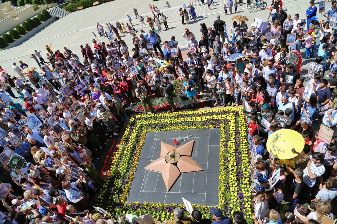 Десятки тысяч жителей республики собрались в Кишиневе, чтобы в единой колонне пройти маршем «Бессмертного полка» по центральным улицам молдавской столицы. Участники шествия пронесли к мемориалу воинской славы «Вечность» вместе с красными флагами и георгиевскими лентами тысячи портретов родственников, сражавшихся за освобождение Родины от фашистских захватчиков.