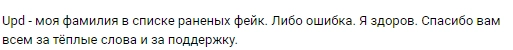 Савченко опроверг эту информацию, заверив подписчиков, что с ним все в порядке.