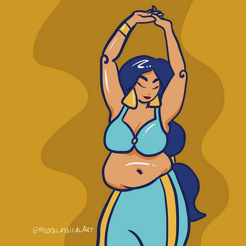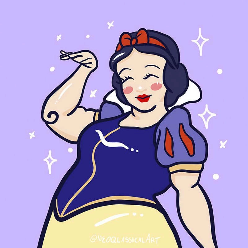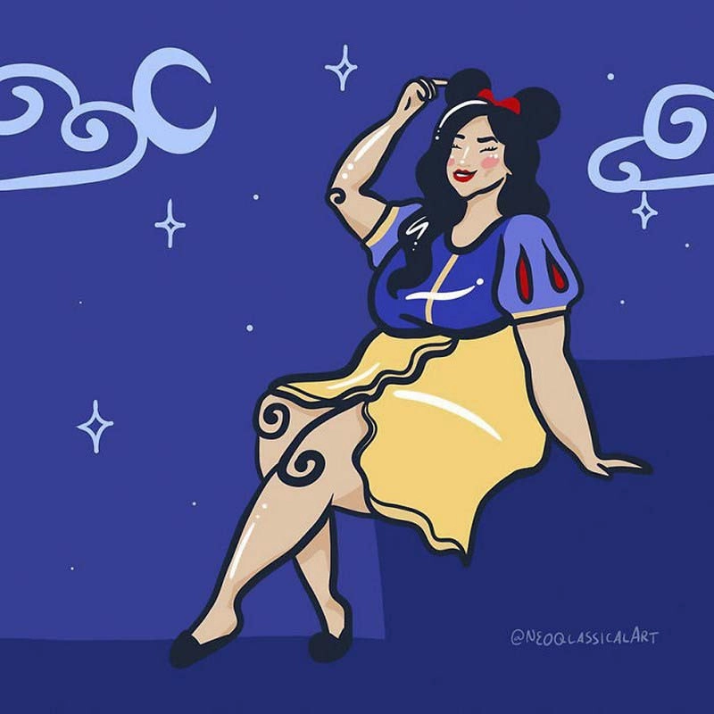 В каких образах только не изображали диснеевских принцесс — и героинями фильмов ужасов, и звёздами журнала Playboy. Художница с ником Neoqlassicalart превратила сказочных красавиц в обладательниц размера «плюс». Ведь в мире полно поклонников, как стройности, так и пышных форм. Посмотрите серию иллюстраций и скажите, к кому относитесь вы?