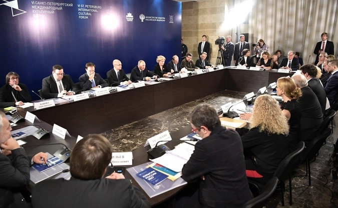 Президент России Владимир Путин принял участие в совещании по вопросам поддержки развития искусства, которое проходило в рамках VI Санкт-Петербургского международного культурного форума.