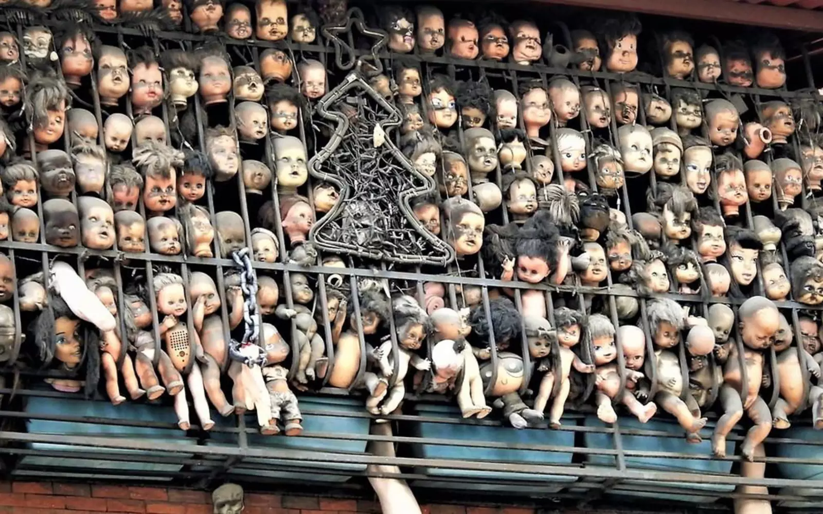 Но на самом деле балкон с куклами — это всего лишь творение местного художника Этаниса Гонсалеса. На создание пугающей инсталляции мужчину вдохновила дружба с местным водителем, грузовик которого тоже был украшен куклами, пишет Odditycentral.