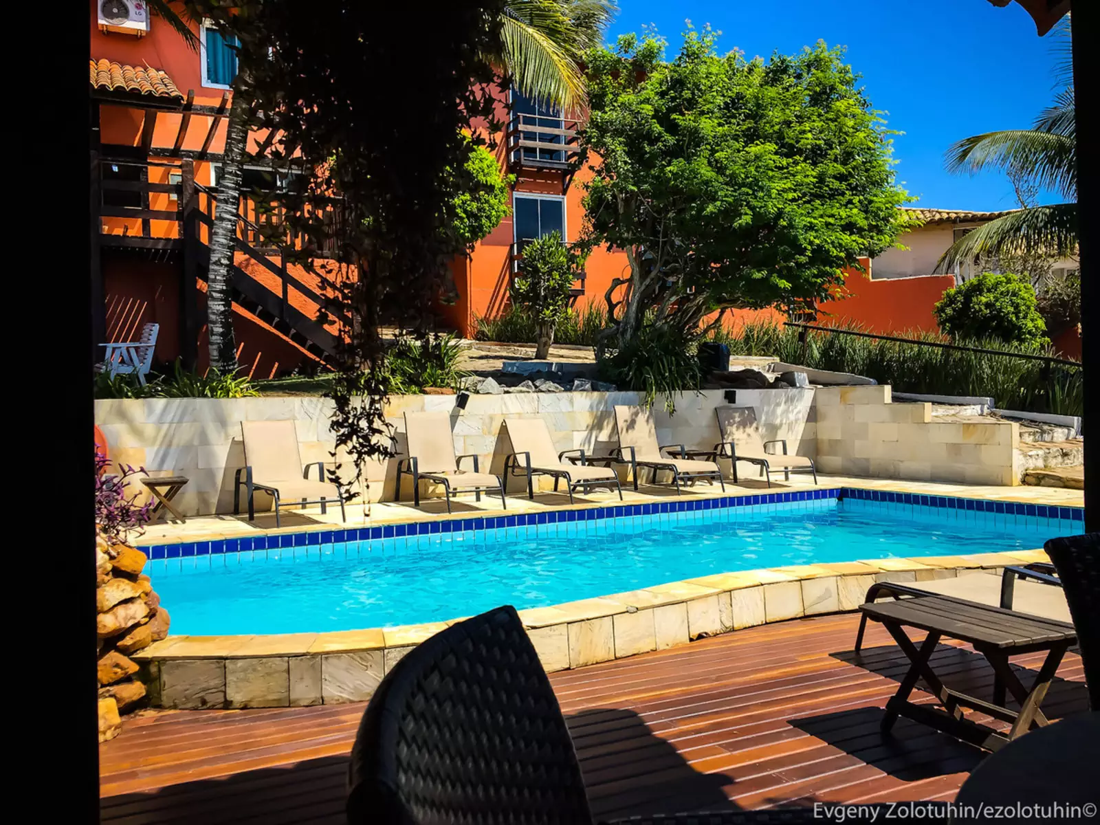 На территории есть бассейн, можно пользоваться без ограничений в любое время суток. На случай, если лень идти несколько минут до пляжей и океана.