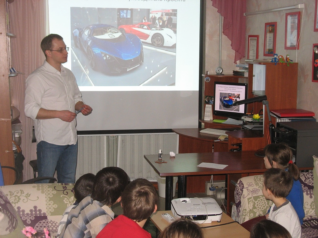 С рассказом о том, какой путь должен пройти молодой человек, чтобы стать хорошим специалистом на производстве, к детям вышел опытный инженер Леонид. Свою карьеру он начал с должности проектировщика зеркал для автомобилей и успешно «дорос» до главы отдела по производству автомобилей «Маруся Моторс». Дети внимательно слушали, сколько и чему пришлось учиться гостю, чтобы его изделия оказались в автомобилях по всей стране и миру и как сегодня идет разработка и производство автомобилей (на примере крупных предприятий УАЗ и штучного изготовления спортивных автомобилей).