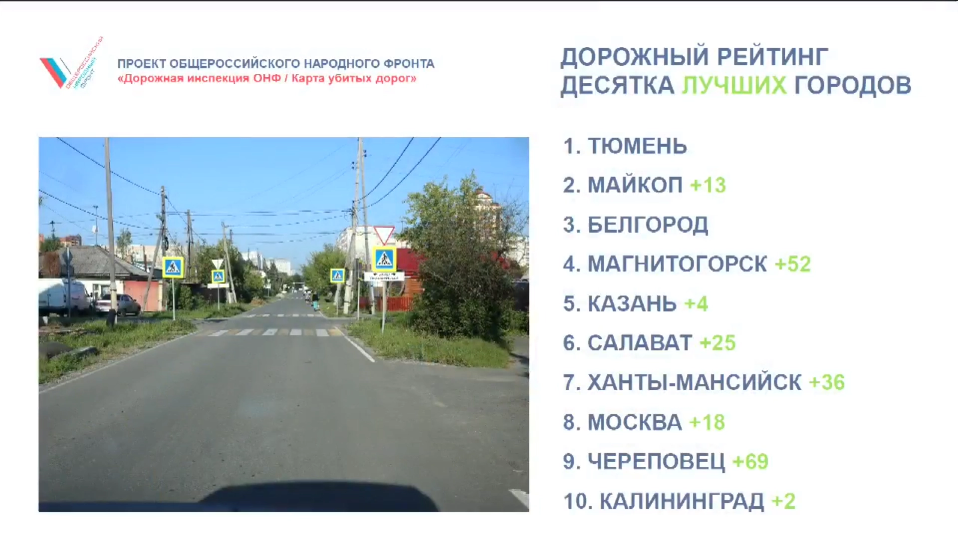 В феврале был запущен сайт dorogi-onf.ru, где каждый житель страны мог отметить на карте „убитую“ дорогу. За восемь месяцев работы сайта были определены топы дорог, которые собрали больше всего голосов пользователей в каждом регионе и в целом по стране. Также мы увидели реакцию чиновников — где-то прислушиваются к мнению граждан, а где-то нет. Восемь из десяти дорог, которые набрали больше всего голосов по стране, приведены в нормативное состояние или добавлены в планы ремонта.