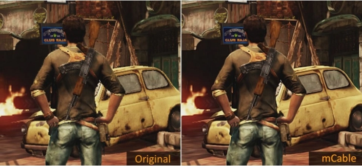 Разработчики встроили в обычный кабель mCable специальный процессор, который осуществляет обработку проходящей через него картинки, избавляя от «эффекта лесенки» без лишней размазанности. mCable пока поддерживает разрешения 720p и 1080p, что делает его вполне пригодным для использования с консолями PlayStation 3 и PlayStation 4.