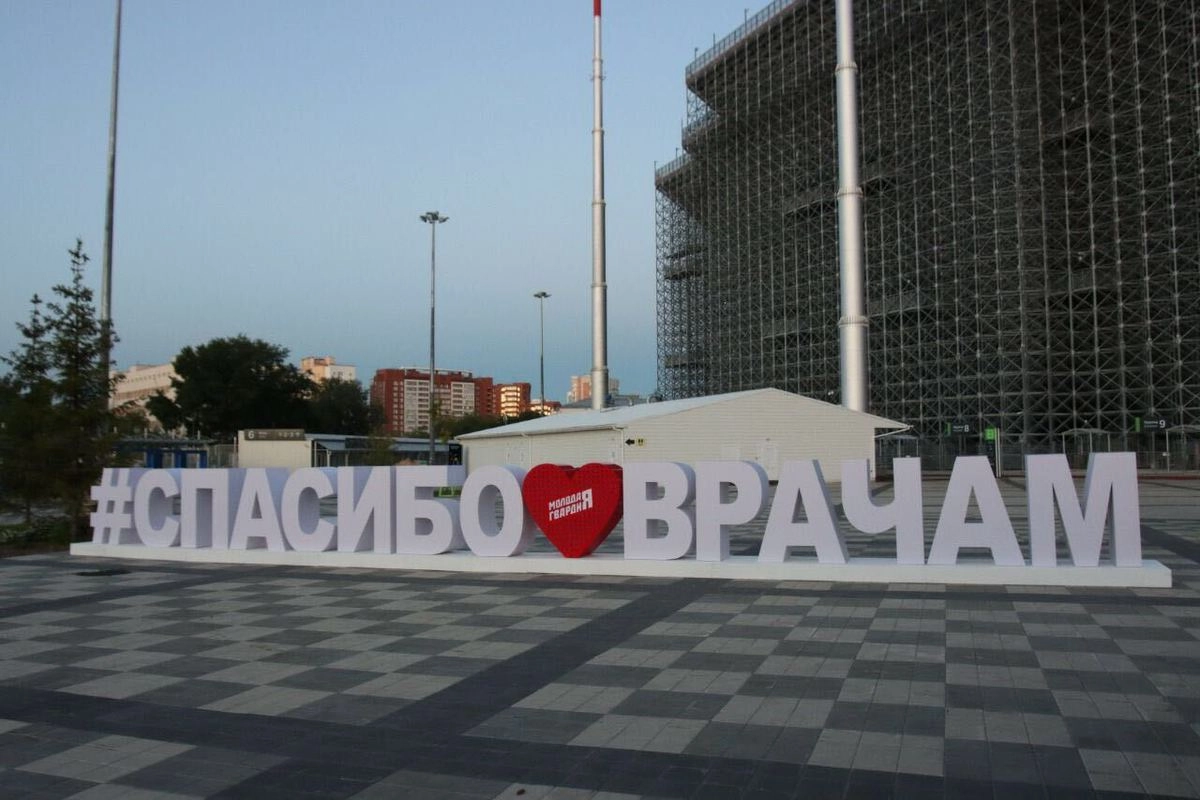 «В Екатеринбурге активисты «Молодой гвардии» сегодня установили 16 метровый арт-объект «Спасибо врачам», любой желающий может оставить свои пожелания медицинским работникам, а мы их передадим в больницы и поликлиники, где врачи и медсестры находятся на передовой в борьбе с коронавирусом. Сегодня не только в Екатеринбурге проходят акции - благодарности медикам за их работу, но и в других регионах России», - рассказал Член Координационного Совета МГЕР, Федеральный координатор по УФО Артем Николаев.