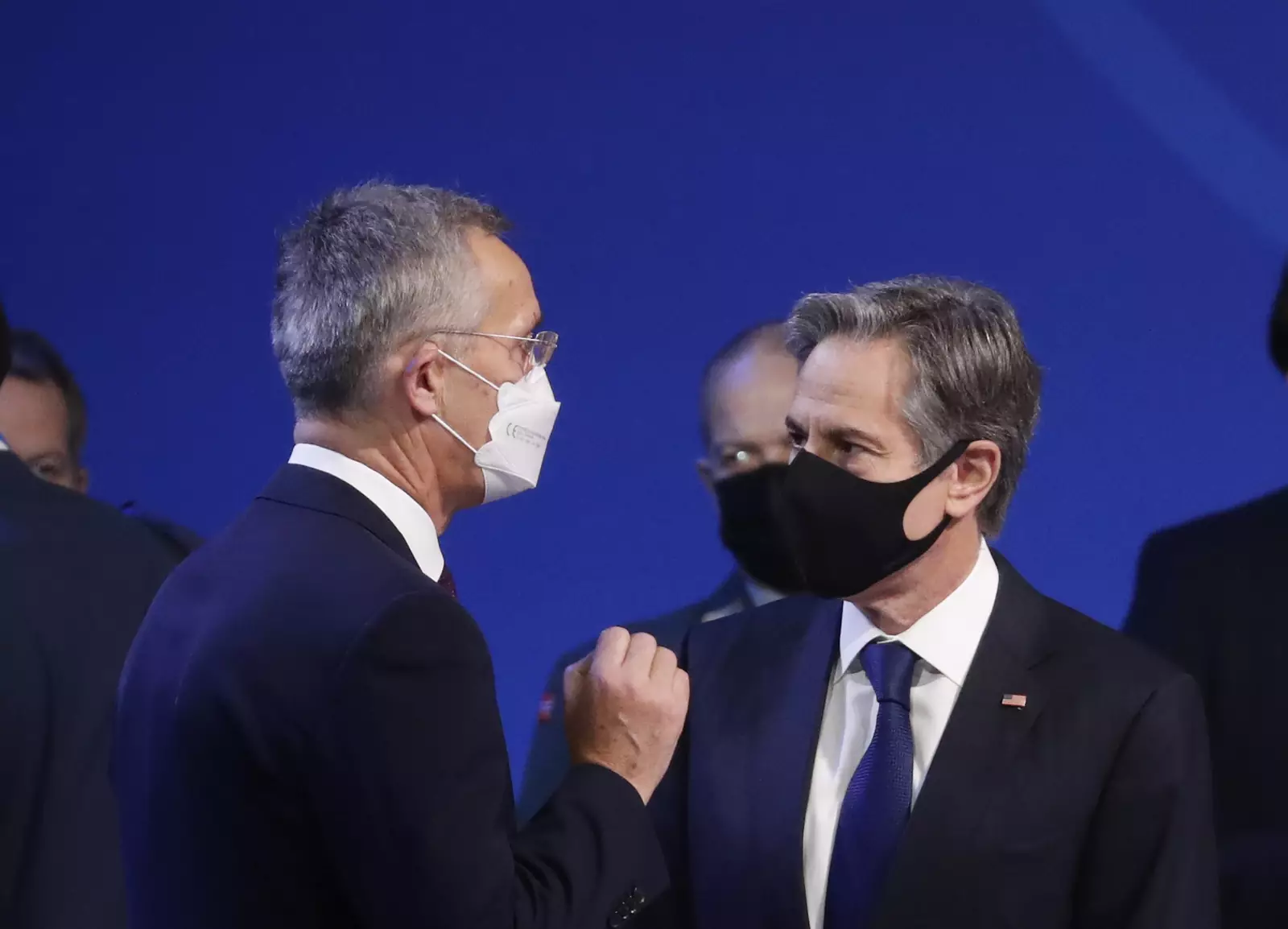 Генеральный секретарь Йенс Столтенберг (слева) и госсекретарь США Энтони Блинкен (справа) перед заседанием Североатлантического совета на уровне министров иностранных дел в Риге