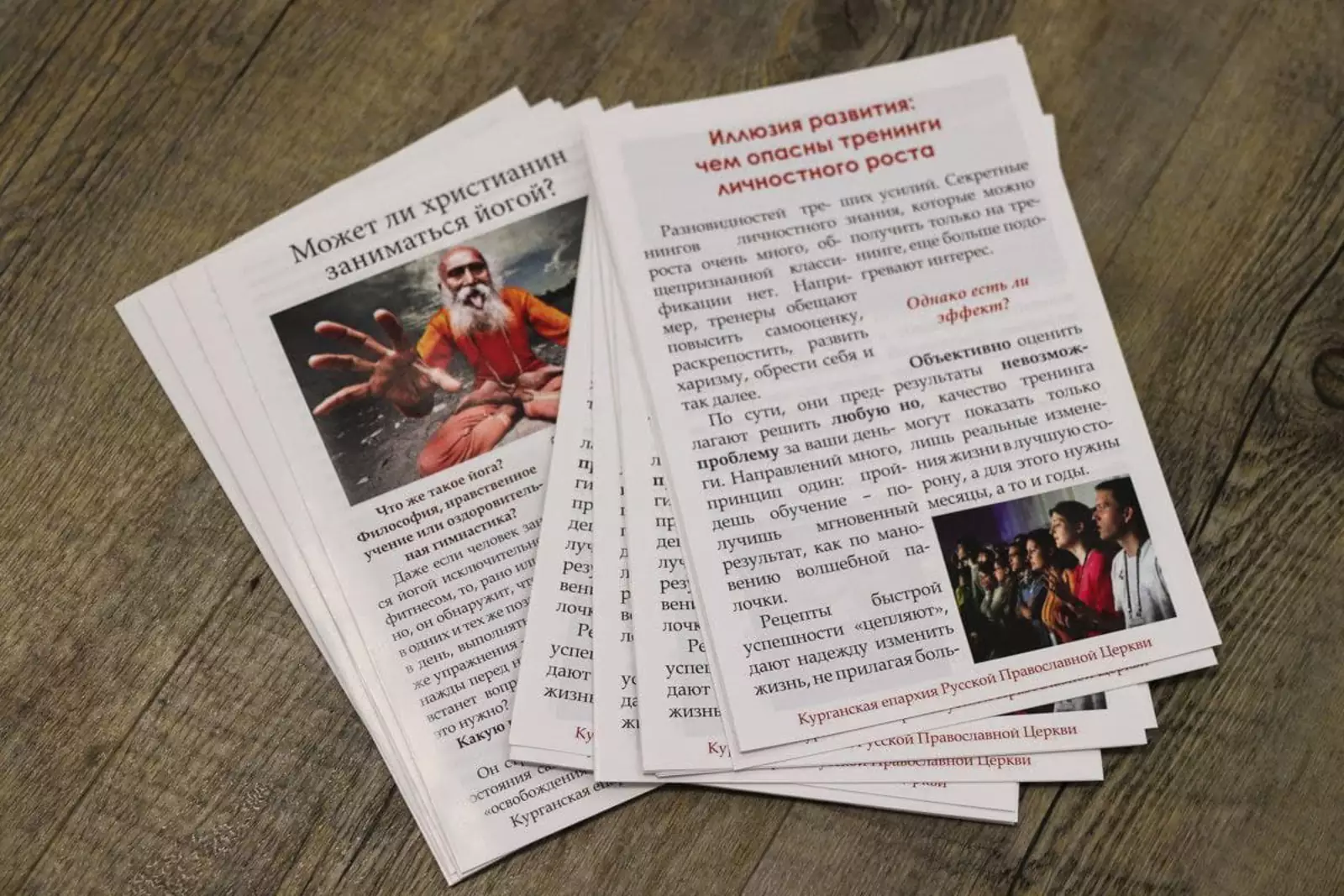 Курганская епархия РПЦ выпустила листовки о духовной опасности тренингов личностного роста и йоги. Их озаглавили «Чем опасны тренинги личностного роста?» и «Может ли христианин заниматься йогой?».