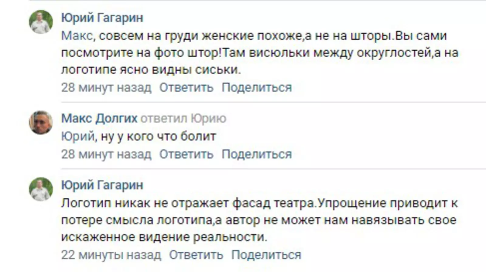 В ближайшее время изменения в лого точно не планируются. Сотрудники театра не находят подобных аллюзий, поэтому мы не видим причины резко менять логотип из-за того, что кто-то увидел в нём что-то нелицеприятное или непотребное, — заявили в театре изданию «Подъем».Сотрудники культурного учреждения напомнили, что «иногда колонны — это просто колонны».