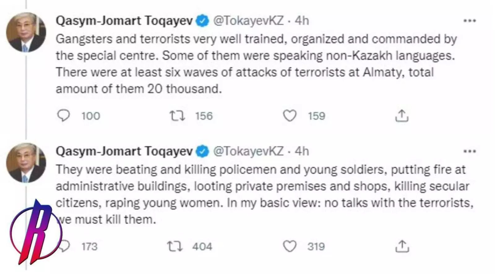 Президент Казахстана Касым-Жомарт Токаев удалил из своего англоязычного микроблога в соцсети Twitter посты о «20 тысячах террористов» и «шести волнах атак» вооруженных «бандитов» на Алма-Ату.