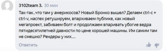 Также УАЗ обвинили в плагиате. По мнению некоторых комментаторов, Hunter нового поколения очень похож на Ford Bronco.