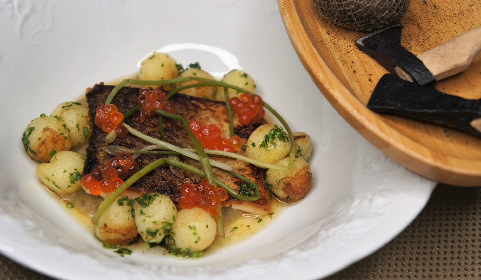 Вот, к примеру, тот же чир. Чтобы он не потерял свои вкусовые качества, его обжаривают на топленом масле. Получается первозданный вкус рыбы. Бланшированный картофель нуазет и стрелки маринованного лука дополняют это блюдо. Кстати, лук Евгений с командой сам собирал на одном из островов Лены. Все подается со сливочным соусом с нотками шафрана.