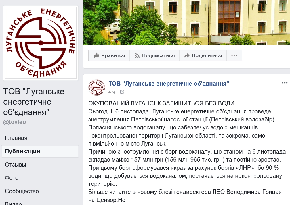 Как отмечается на странице предприятия в Facebook, большая часть долга образовалась из-за неуплаты со стороны самопровозглашенной Луганской народной республики.