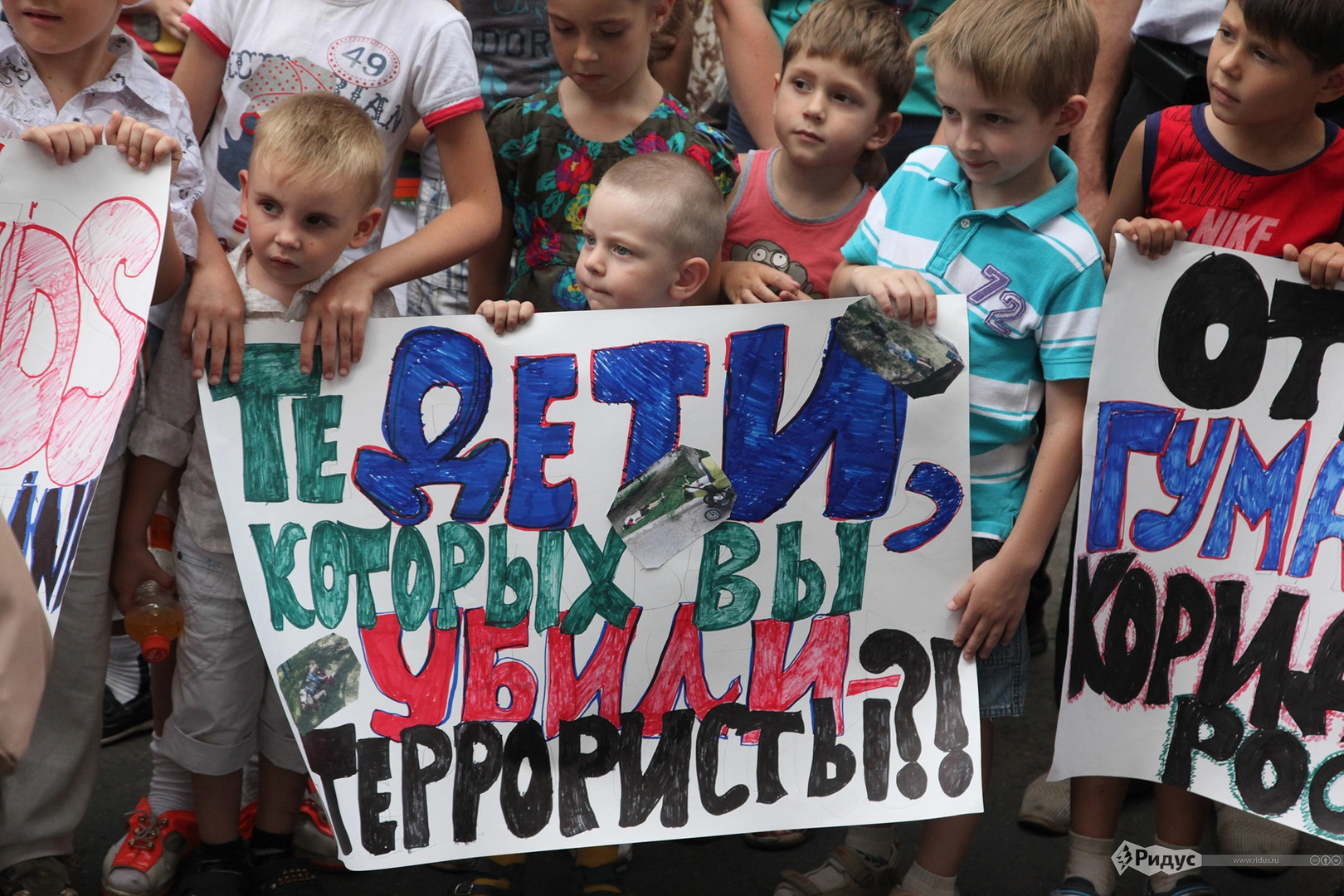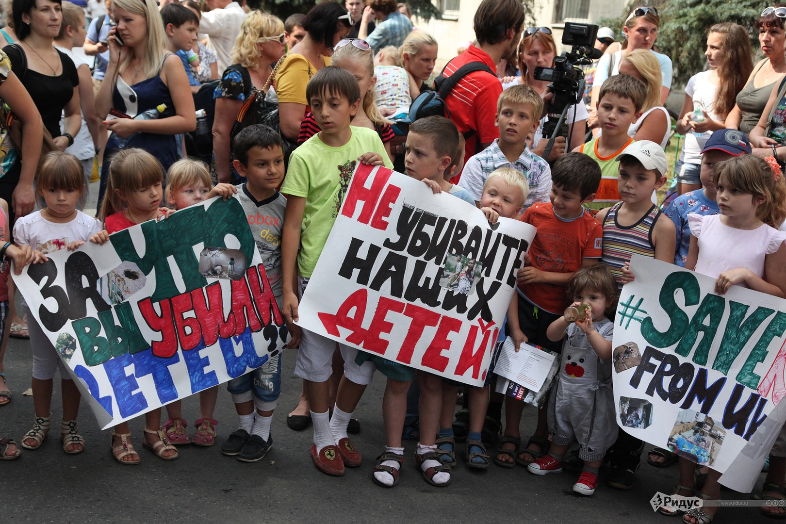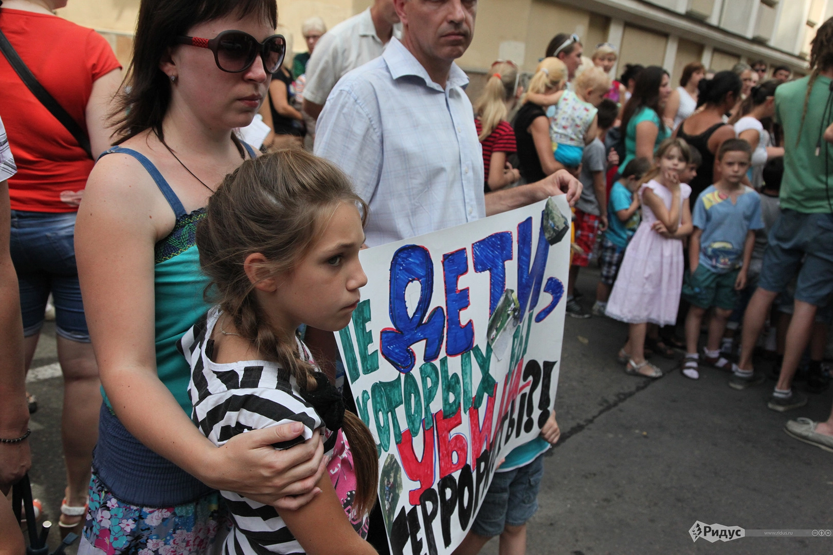 К посольству Украины в Леонтьевском переулке пришли около сотни человек, в основном дети. Матери и бабушки, в редких случаях отцы, привели их сюда, чтобы показать послу своей страны: вот они «террористы», которых вы уничтожаете каждый день на Донбассе и Луганщине.