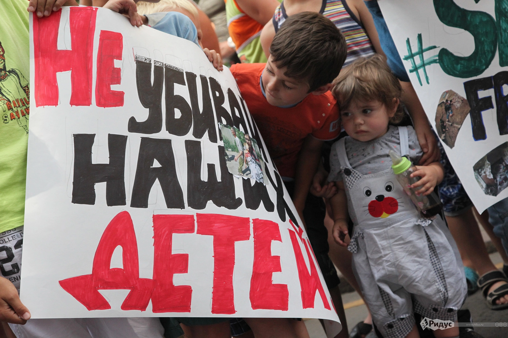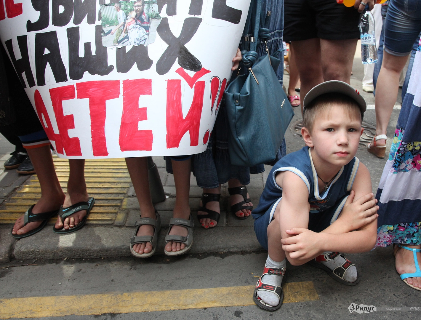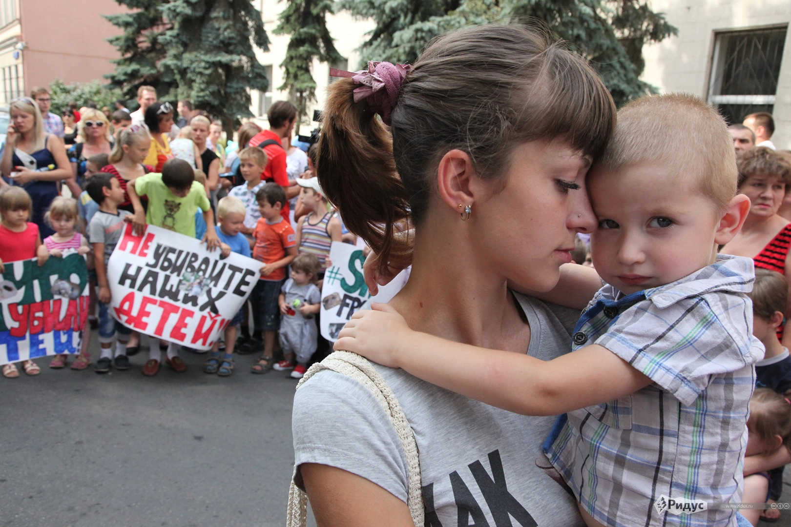 К посольству Украины в Леонтьевском переулке пришли около сотни человек, в основном дети. Матери и бабушки, в редких случаях отцы, привели их сюда, чтобы показать послу своей страны: вот они «террористы», которых вы уничтожаете каждый день на Донбассе и Луганщине.