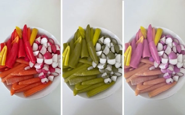 1. Как арбуз видят обычные люди. 2. Как его видят люди с дальтонизмом. 3. Как приложение меняет цвета, чтобы для дальтоника зеленый превратился в подобие красного.
