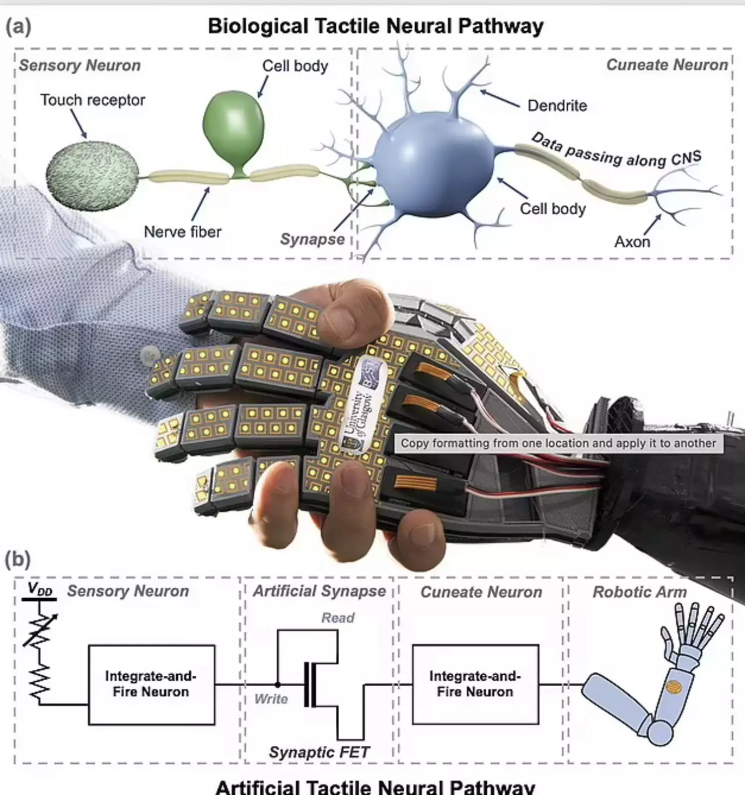 Электронная кожа использует новый тип обработки данных, основанный на синаптических транзисторах. Эти транзисторы, по сути, имитируют нейронные пути мозга, чтобы «чувствовать боль».