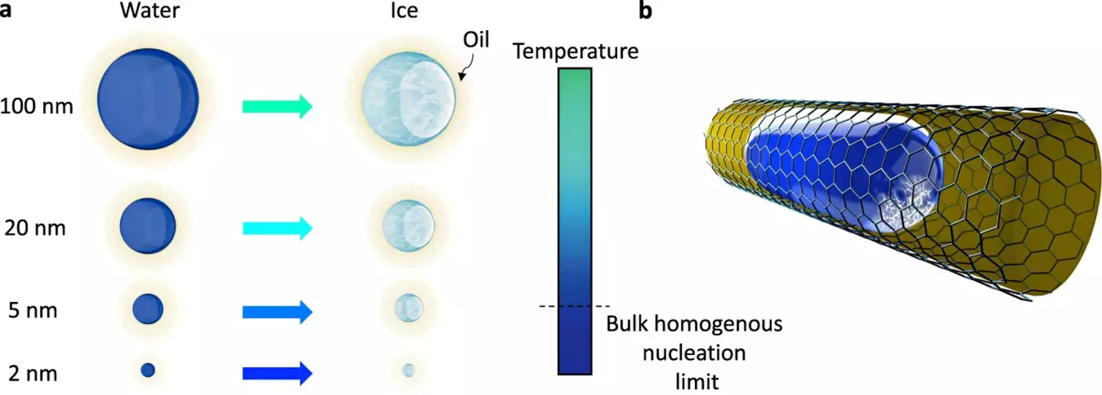 Проблема замерзания воды кроется в термодинамике зародышеобразования, или нуклеации. При определенных температурах в точках зародышеобразования вода кристаллизуется, то есть меняет своё агрегатное состояние. Но для научных целей нужна именно холодная вода, а не лёд.