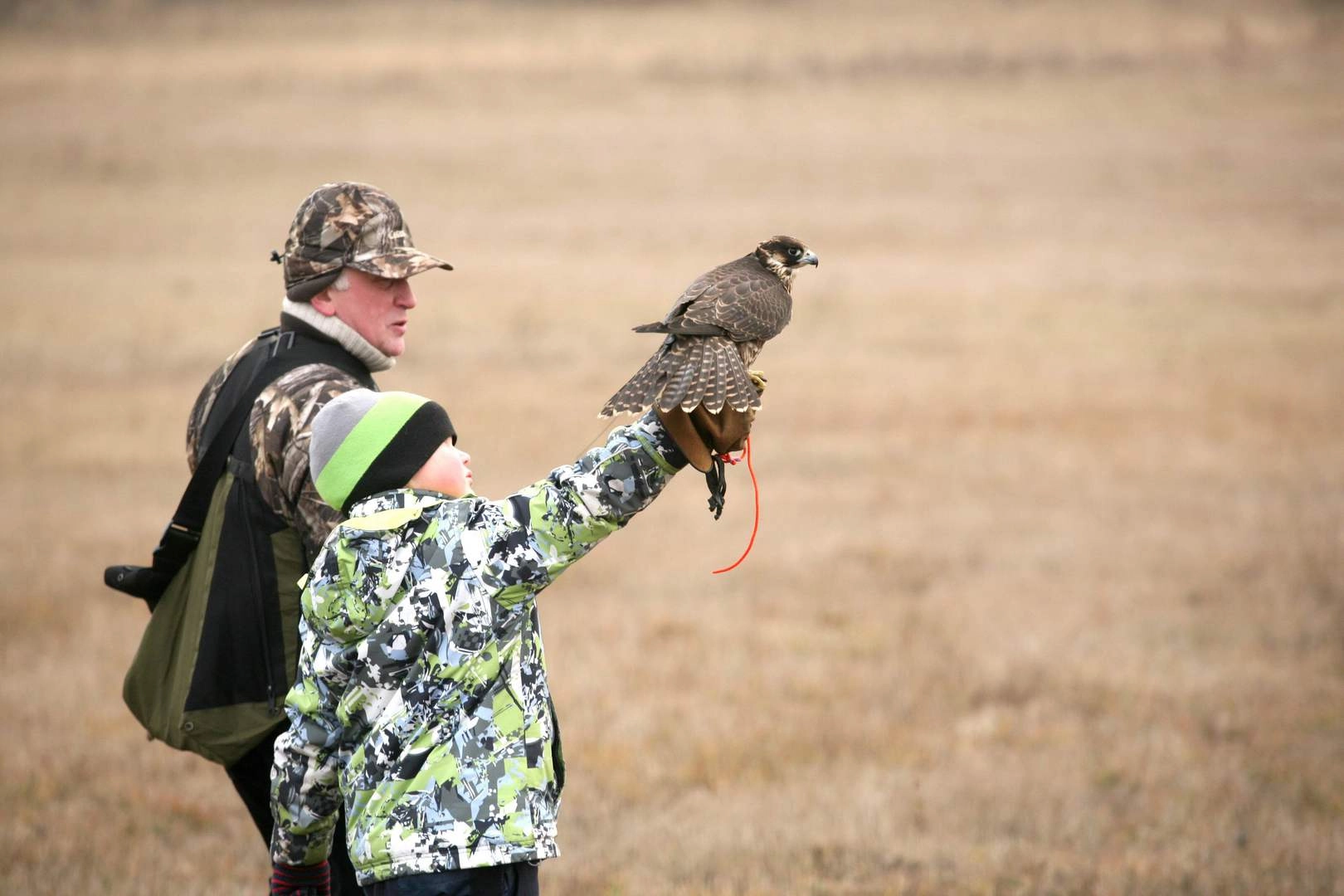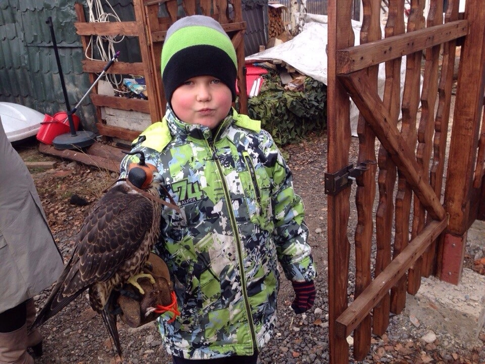 Сокола-сапсана по кличке Хельга в ее показательных выступлениях поддерживали сразу два хозяина. Александр Петрашек, пенсионер из Москвы, не смотря на недолгий опыт в соколином деле, кажется знает о нем все. Разделяет необычные интересы дедушки-физика по образованию, самый юный участник соревнований — его внук и тезка, пятилетний Саша Щербаков. Мальчик говорит, что в соколе Хельге подкупил ее «обаятельный» вид, когда та, расправляя огромные крылья, совершает полет.