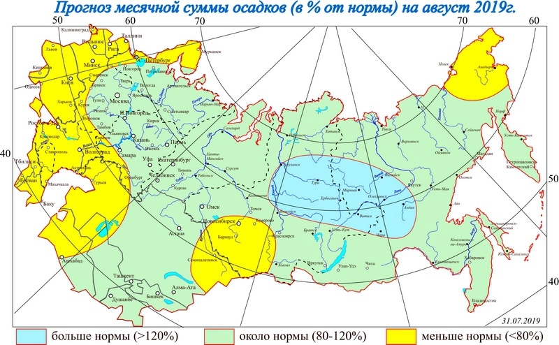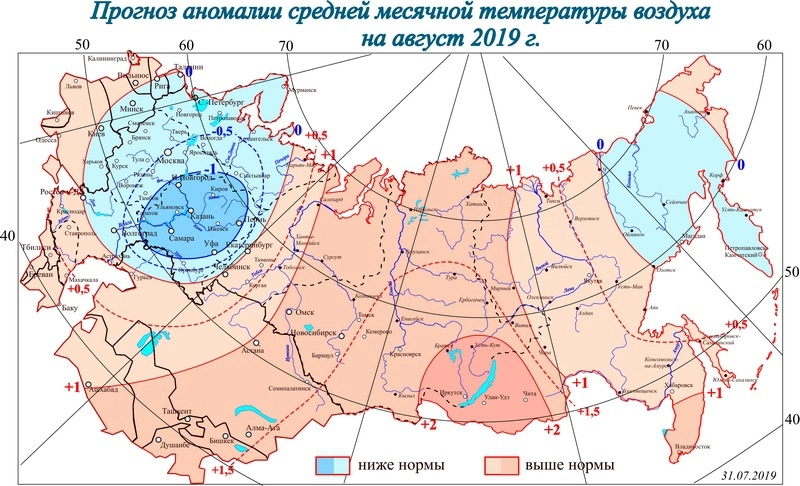 Согласно прогнозу, уже начало августа будет прохладным. Так, до конца недели центр европейской части России будет находиться под влиянием активного циклона, который будет перемещаться от южных склонов Урала на север. Этот циклон будет удерживать в регионе более прохладную погоду, чем обычно свойственна региону. Также пройдут небольшие дожди.