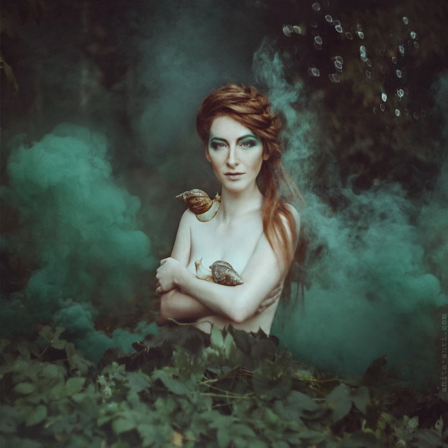 Фотограф Анита Стоян, больше известная под псевдонимом Anita Anti, вдохновляясь сказками и мифами со всего мира, создаёт фантастические женские портреты. Анита родилась на Украине, сейчас живёт и творит в Нью-Йорке. Все её работы наполнены мистическим волшебством и окутаны тайной. Некоторые фотографии основаны на конкретных историях, вот мы видим ящик Пандорры, вот Алису в стране чудес, вот Малефисенту. Другие же истории остаются загадкой, позволяя зрителю самому додумать сюжет.