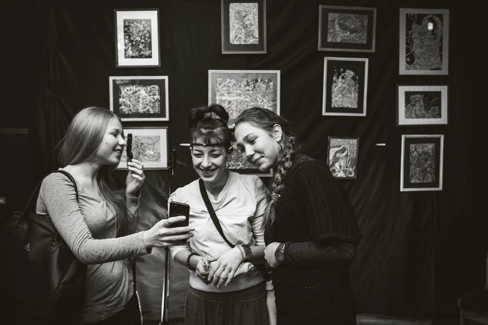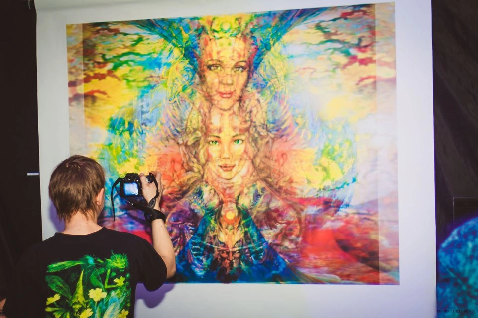 Зайдя в Дом архитектора в Ижевске, где проходила выставка визуального искусства "Gnezdo", непосвященному человеку могло показаться, что он попал в какую-то секту. Звучала музыка, вокруг были картины большие и маленькие, которые при правильном освещении оживали, необычные арт-объекты светились, вращались, чем притягивали взгляды всех входящих. Тут же продавались виниловые пластинки, индийская и "хэндмэйд" одежда и украшения, даже яйца-писанки, кто-то разливал чай и кофе, всюду бегали дети. Но это не секта, на самом деле, там никто ничего не проповедовал, кроме красоты и творчества.