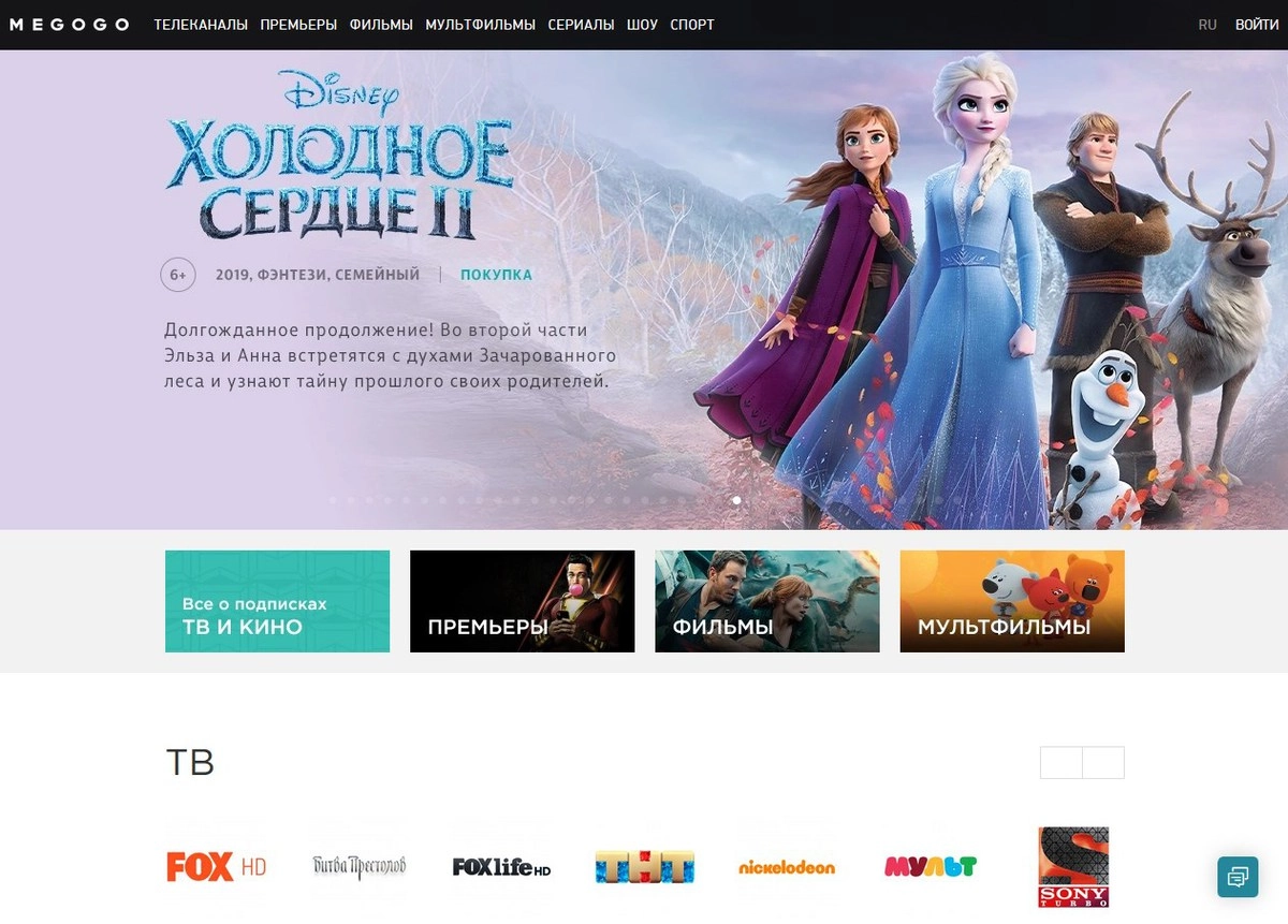 Еще один киносервис с возможностью смотреть фильмы бесплатно, но далеко не все. Большая часть хороших или хотя бы известных и популярных фильмов, сериалов и мультфильмов доступна по подписке за 397 рублей в месяц. За эксклюзивные премьеры придется платить отдельно. Пробный месяц продается за один рубль (жадины). Весь контент с хорошим качеством изображения и звуком. Многие фильмы можно смотреть на нескольких языках. Поэтому, если вы мечтали посмотреть «Джокера» на азербайджанском — ваша мечта станет реальностью с Megogo.