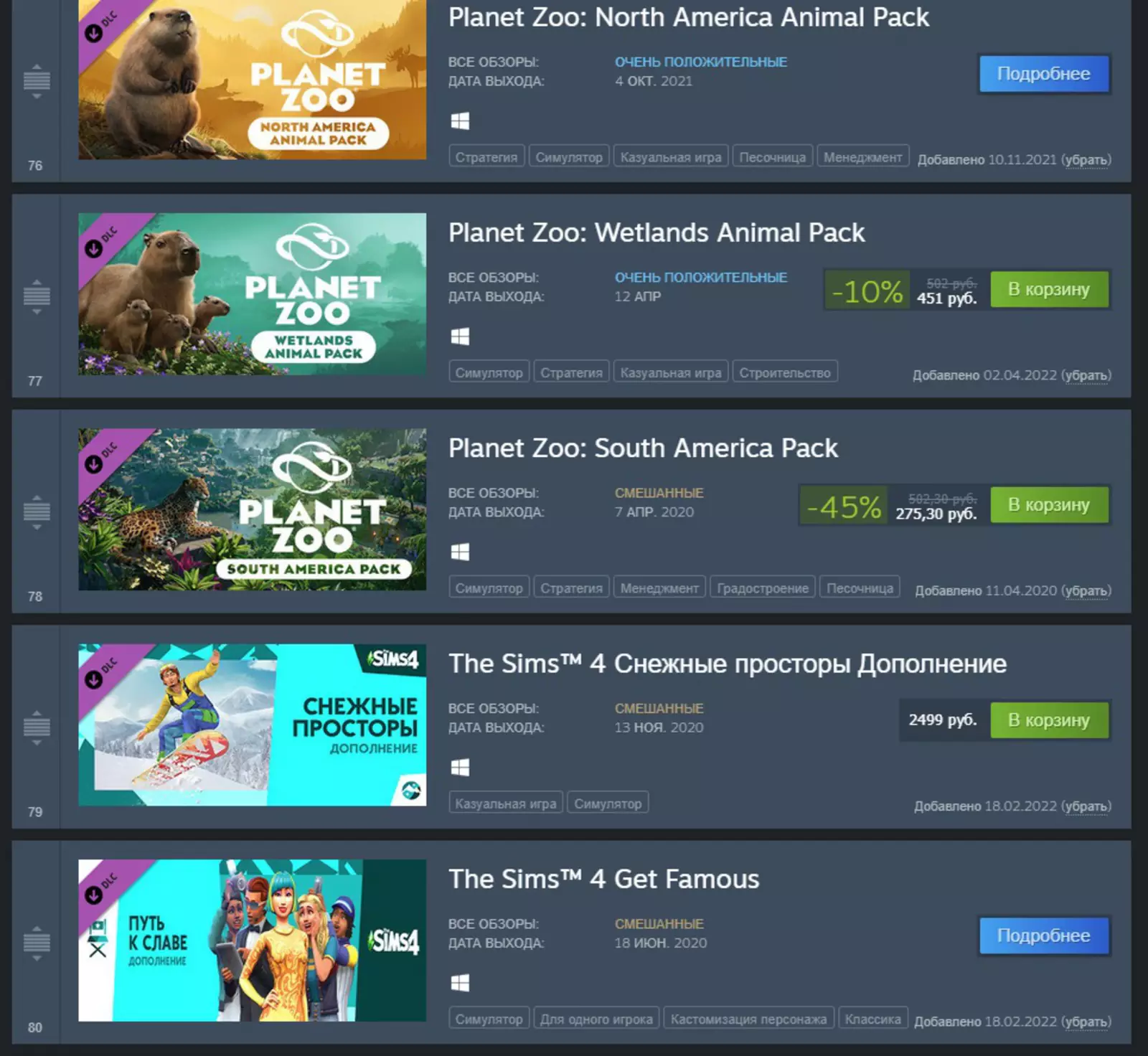 Более того, далеко не все игры снова доступны. Так, почему-то не все дополнения из линейки The Sims 4 можно приобрести, хотя отдельные комплекты — можно.