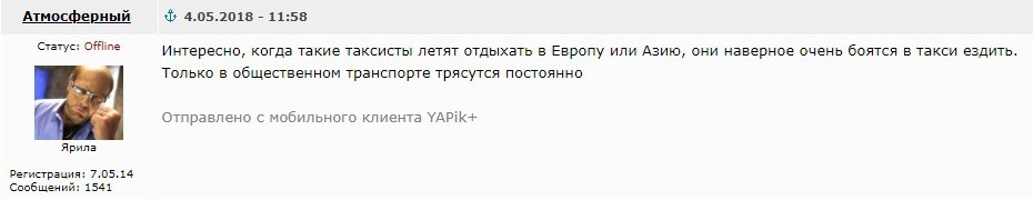 В прошлом году «Ридус» уже описывал подобный случай, когда в Санкт-Петербурге таксист потребовал у иностранного туриста 16 тысяч рублей за 20-минутную поездку. Водитель заблокировал двери в своем BMW и не выпускал пассажира, пока тот не заплатил по счету. При этом таксист выдал иностранцу квитанцию об оплате.