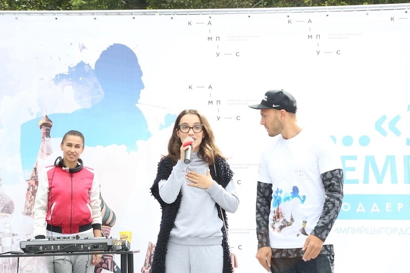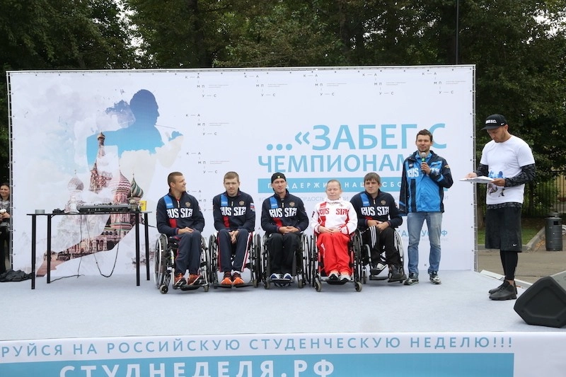 Дмитрий Яшанькин провел для всех участников зарядку — и трехкилометровый забег стартовал. Его колонну возглавили спортсмены-паралимпийцы. На финише студенты провели флешмоб — все желающие смогли на большом полотне написать свои пожелания российским олимпийцам, которые сейчас находятся в Рио-де-Жанейро. Это полотно уже в скором времени будет направлено в столицу Бразилии.
