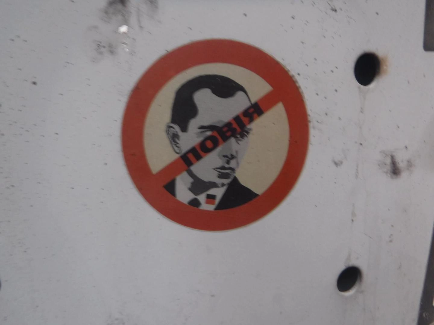 Свое негативное отношение поляки выражают не только к флагу УПА. Так, в фейсбук было опубликовано фото, на котором наклейка с лицом Степана Бандеры приклеена на мусорный бак в Варшаве. На наклейке надпись «Повiя», что в переводе с украинского означает «Проститутка».
