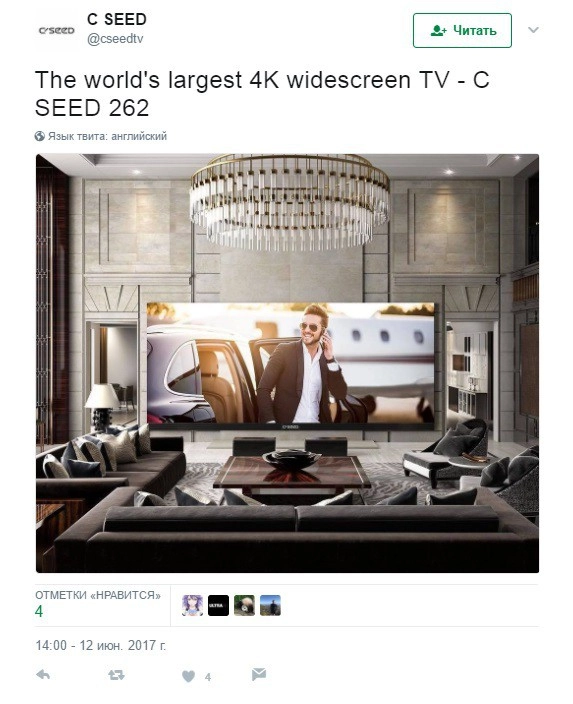 Кроме того, телевизор оборудован защитной тканевой ширмой с дистанционным управлением и медиасервером 4K. Его цена составляет 533 тысячи долларов. За установку производители просят еще 38,5 тысячи: это довольно трудоемкий процесс, так как устройство весит 800 килограммов.
