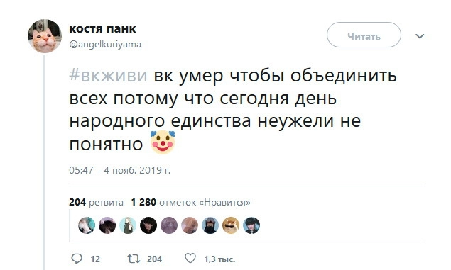 Пользователи Twitter запустили традиционный в таких случаях хэштег #вкживи.
