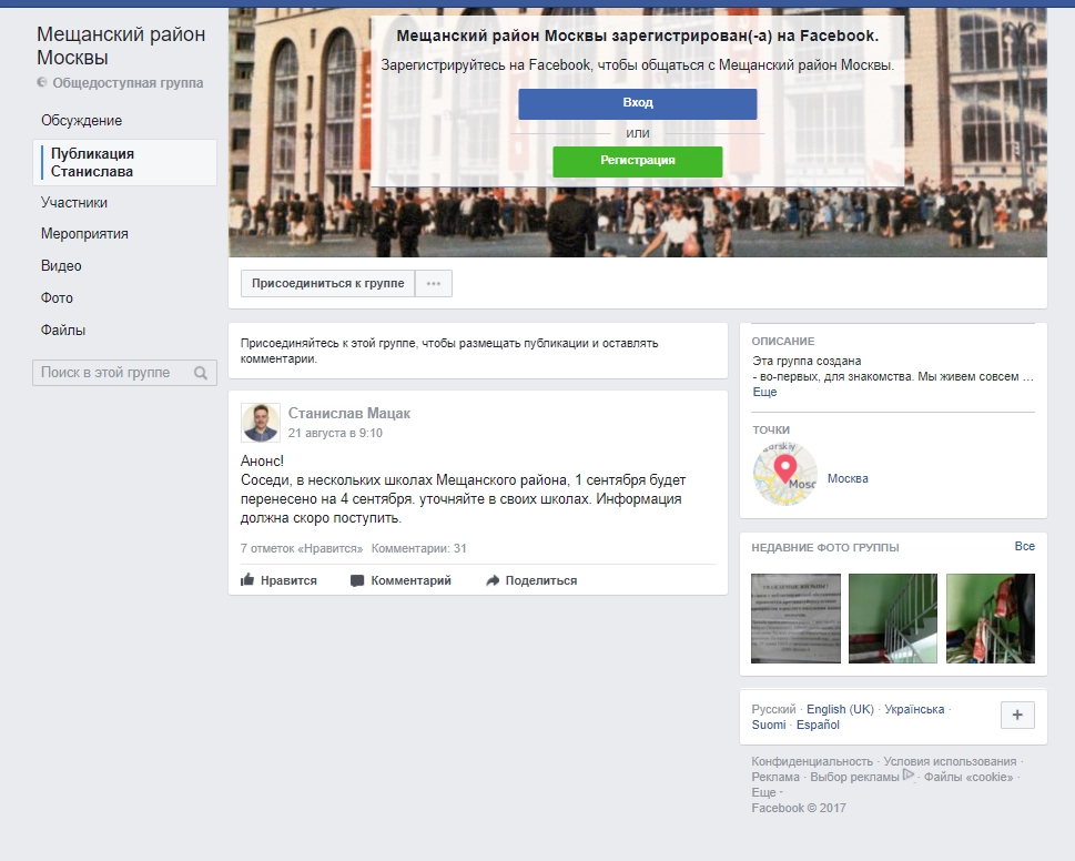 Школьную линейку, посвященную началу учебного года и традиционно проводимую 1 сентября, перенесли в нескольких московских школах, расположенных поблизости от соборной мечети. Сообщение о вероятном переносе линейки появилось несколько дней назад в Facebook.