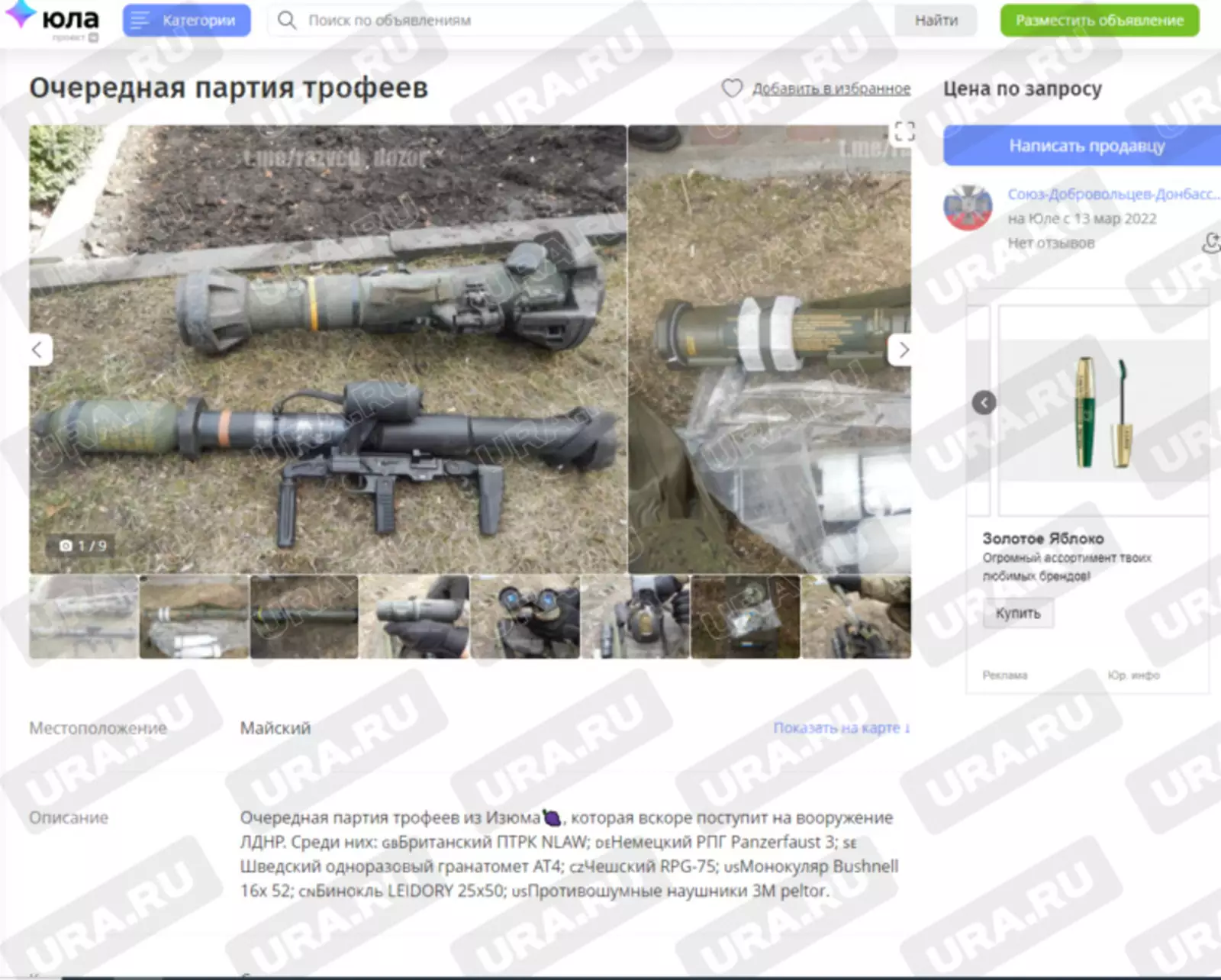 Ранее на площадке для объявлений «Юла» появилось сообщение о продаже «партии трофеев», которая якобы должна была поступить на вооружение частично признанных Донецкой и Луганской народных республик.