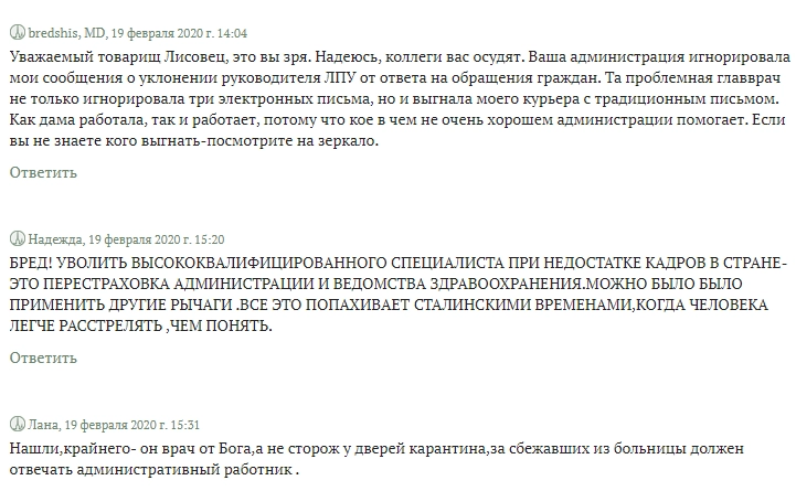Как сообщили РИА Новости в пресс-службе городского комитета по здравоохранению, его уволили по инициативе работодателя.