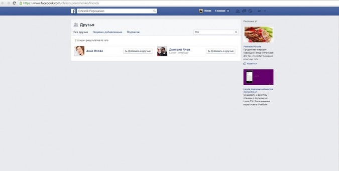 Супруги Яловы в Facebook являлись друзьями молодого человека по имени Олексий Порошенко, однако позже «сетевая дружба» прекратилась.