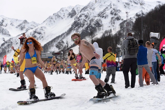 Со склонов сочинского курорта «Роза Хутор» на лыжах в купальниках и плавках спустилось более тысячи человек в рамках фестиваля-карнавала BoogelWoogel, сообщает ТАСС.