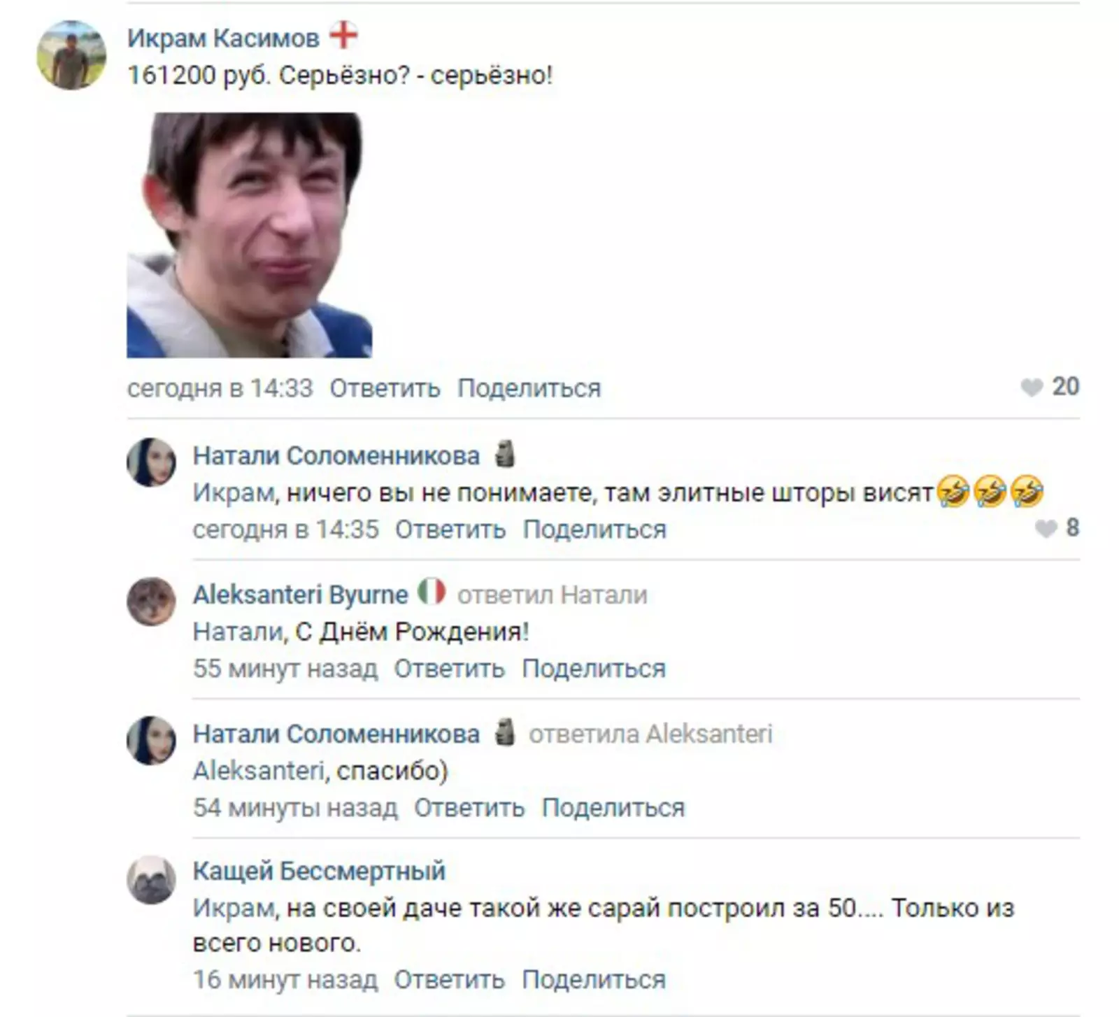 Пользователей «ВКонтакте» возмутил пафосный тон объявления, контрастирующий с, мягко говоря, спартанским обликом беседки. Многие усомнились, а стоил ли этот «сарай» потраченных на его строительство денег.