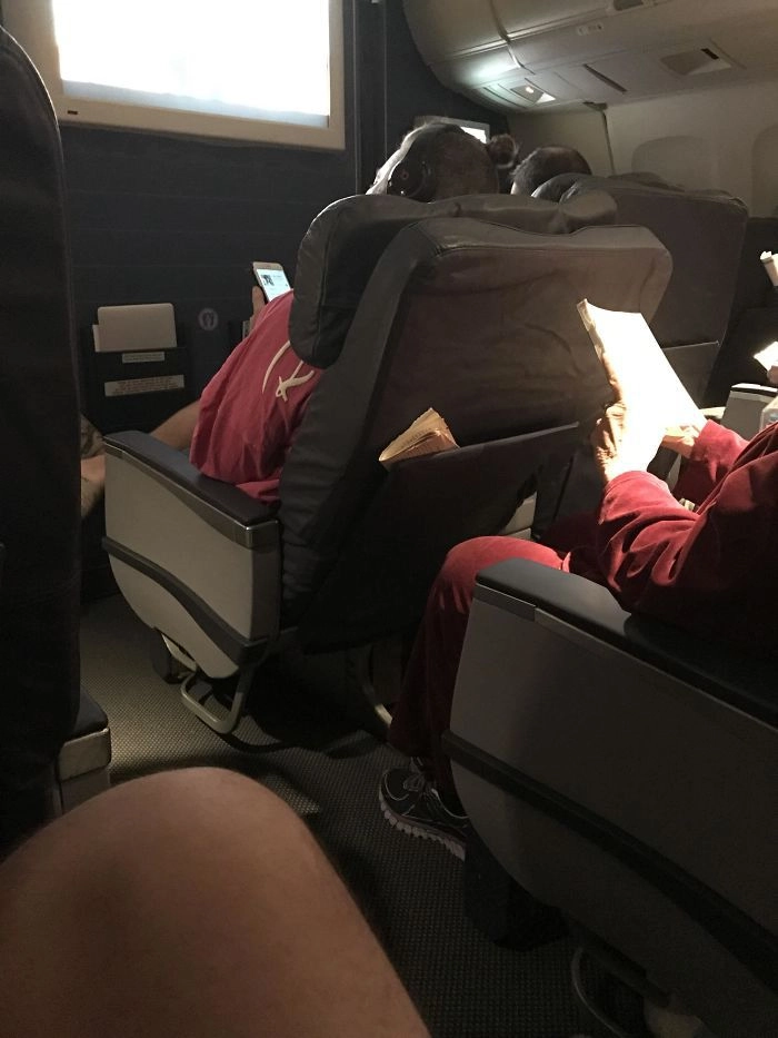«Впервые в жизни летел первым классом, и весь полет мне испортила женщина, которая вырывала из книги страницы, которые она уже прочла»