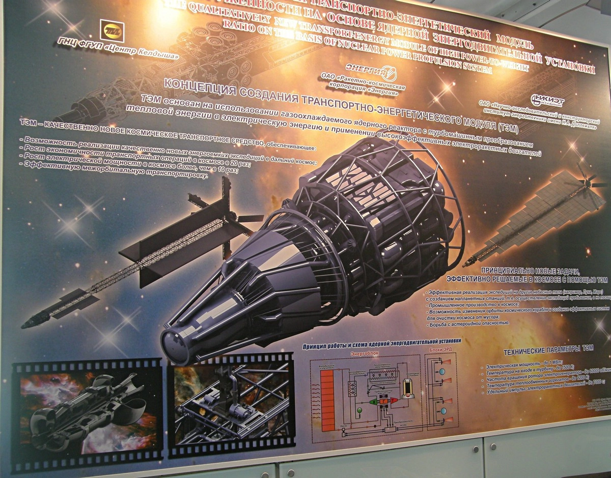 Тогдашний генеральный директор этого центра академик Коротеев в свою очередь подтвердил информацию о том, что «эскизный проект космического корабля с ядерной энергоустановкой мегаваттного класса будет в ближайшее время создан на основе ядерной энергодвигательной установки». В транспортно-энергетический модуль (ТЭМ) войдет газоохлаждаемый атомный ректор с турбомашинным преобразованием тепловой энергии в электрическую и высокоэффективные электроракетные двигатели. ТЭМ — это качественно новое космическое средство. Он сможет обеспечить длительные экспедиции в дальний космос, рост экономичности транспортных операций в 20 раз, рост электрической мощности в космосе более чем в 10 раз, эффективную межорбитальную транспортировку.