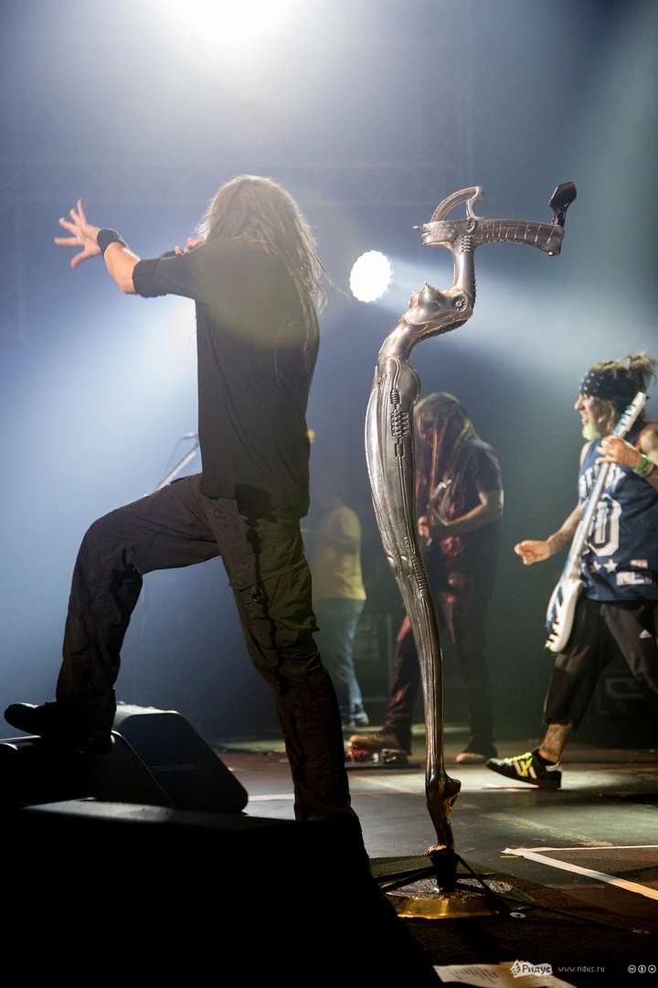 Удивительно, но звук на выступлении американских металистов был похуже, чем у их коллег из Бразилии. Вот он, человеческий фактор. Аппарат – тот же, «звукарь» - другой. Впрочем, разница была некритичной. Полтора часа пролетели незаметно. Казалось, только начали, и вот уже Джонатан Дэвис отыграл на волынке «Shoots and ladders» и начал прощаться с публикой.