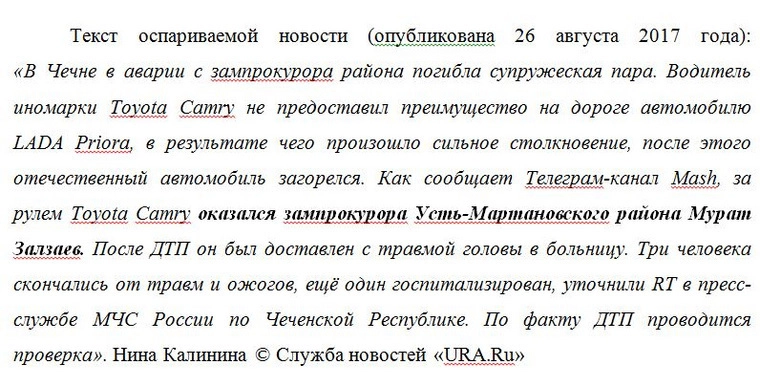 Мы надеялись, что Верховный суд Чечни восстановит справедливость и отменит решение Урус-Мартановского суда. В результате он показал, что является независимым, беспристрастным и руководствуется исключительно законом, — прокомментировал решение республиканской инстанции адвокат Павел Бабиков, представляющий интересы URA.RU.Бабиков добавил, что считает сегодняшнее решение по делу закономерным, но окончательное решение об обжаловании будет принято, когда уральское СМИ получит его мотивировочную часть.
