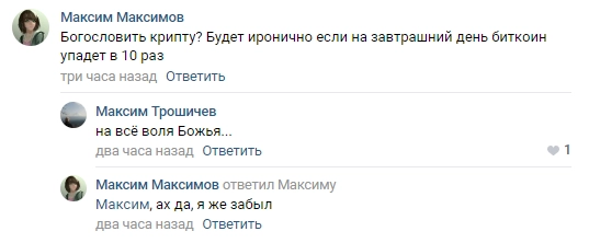 Пользователи Рунета встретили видео шутками в привычном уже антиклерикально-скептическом духе. Многие интересовались, как освящение скажется на курсах криптовалют в мире.