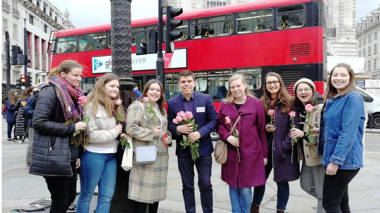 В Соединенных Штатах Америки добровольцы принесли праздник в кампусы университетов. Цветы дарили женщинам и на главной площади столицы Великобритании: