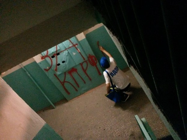 Личность мужчины в футболке либерал-демократов, который красной краской написал на стене подъезда фразу «За КПРФ!», до сих пор не установлена. Впрочем, судя по следующему фото, активисты ЛДПР тут же сердечно извинились перед горожанами: