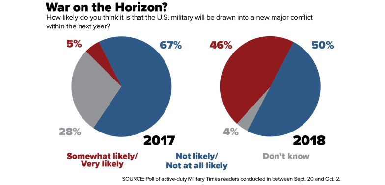 Почти половина американских военных считают, что США вскоре будут вовлечены в полномасштабную войну, показал опрос издания Military Times.