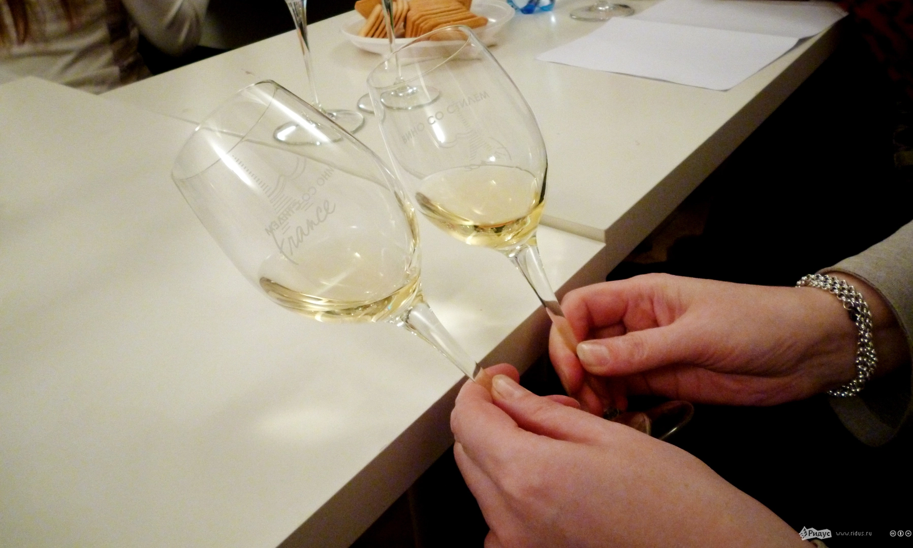 Дегустации проводит посол французских вин в России Юлианна Григорьева, соответственно, и напитки на этих встречах исключительно французского производства. "Сегодня у нас десять сортов белого вина. Каждое из этих вин обладает своим характером, и мы попытаемся их проследить и раскрыть, - объяснила Юлианна. - Мы сравним между собой несколько шардоне, несколько совиньон блан и три эльзаса, чтобы понять какие они разные".