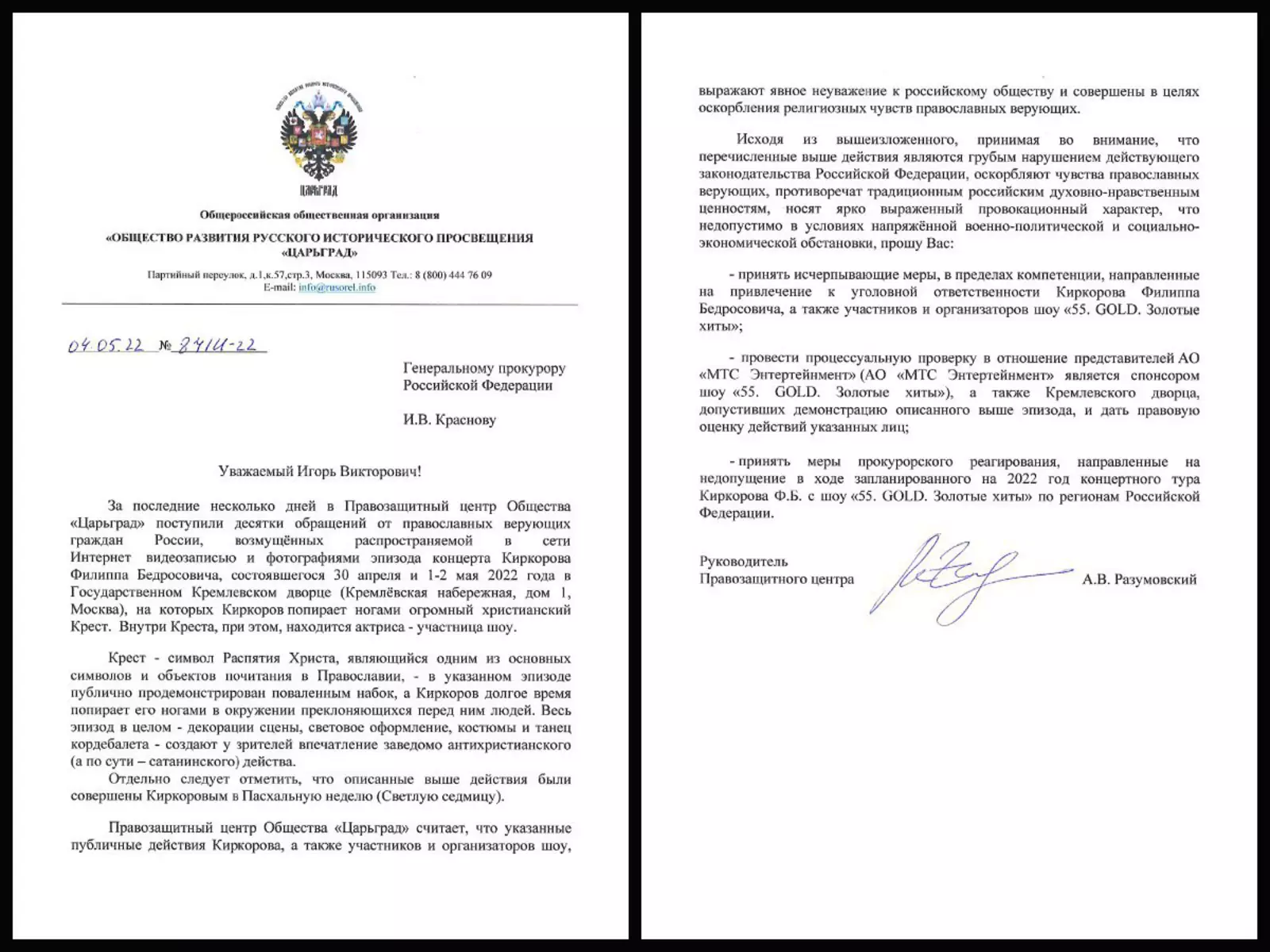 Филипп Киркоров может стать фигурантом уголовного дела. На этом настаивают активисты православного движения «Царьград», обратившиеся в Генпрокуратуру.
